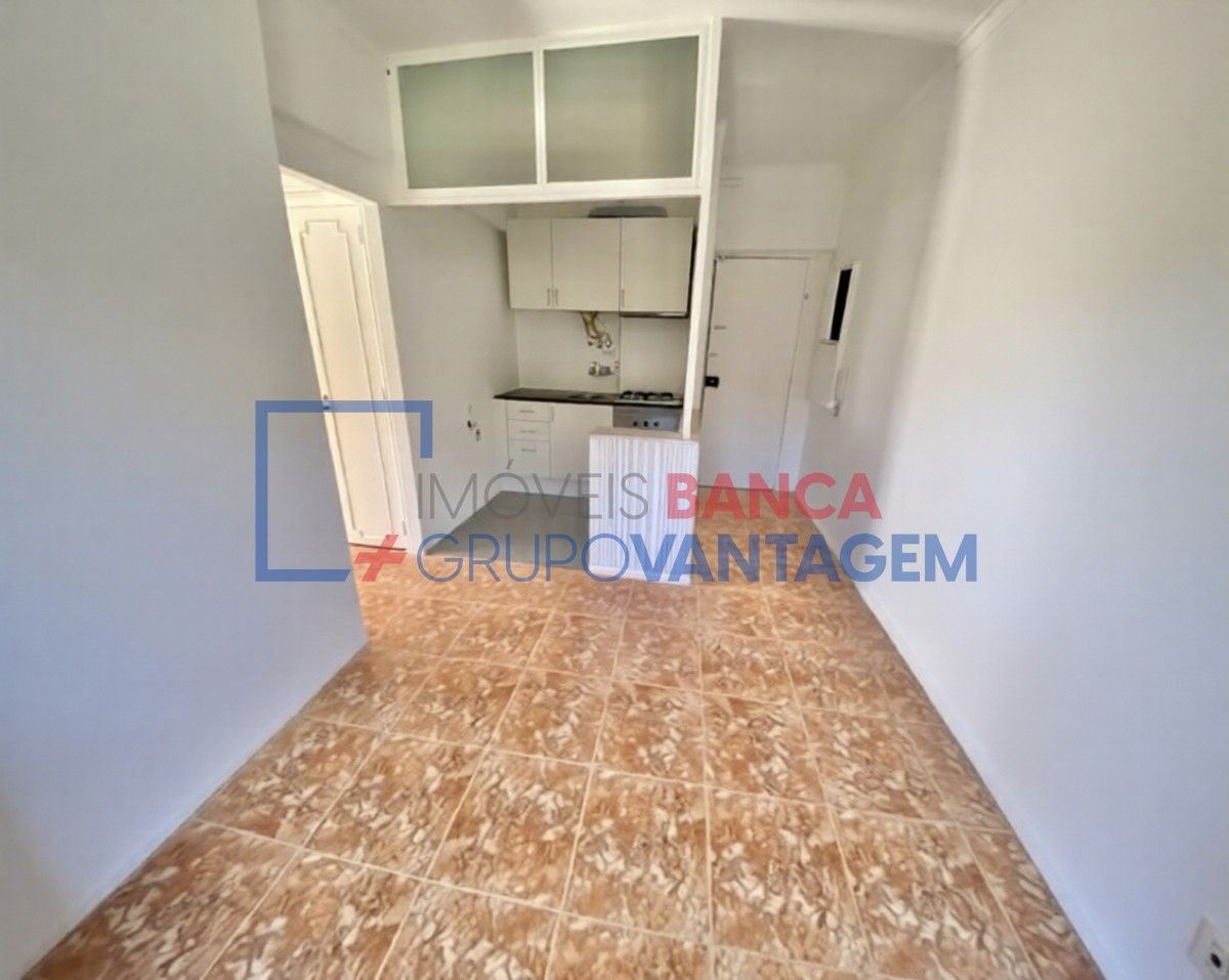 Inserido no 2º andar, o imóvel é composto por sala com kitchenette, quarto, casa de banho e varanda.