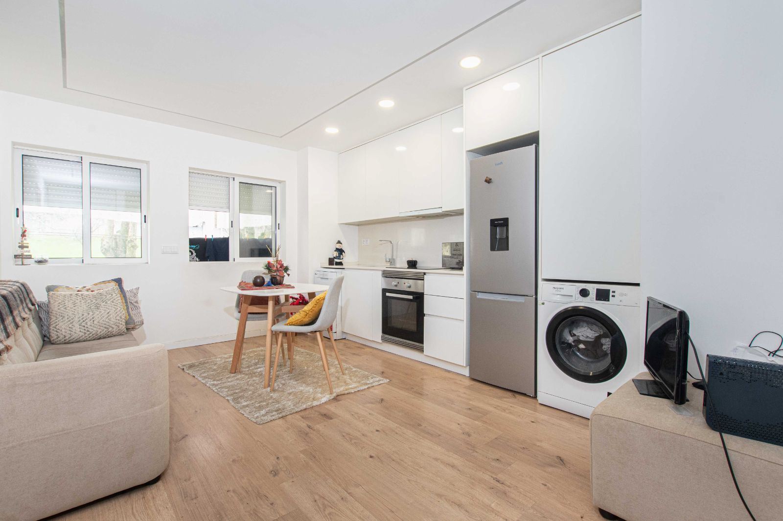 O imóvel foi totalmente remodelado, apresentando um ambiente moderno e funcional. A remodelação incluiu canalização e eletricidade renovadas, pavimentos atuais, caixilharia moderna, cozinha e casa de banho novas.