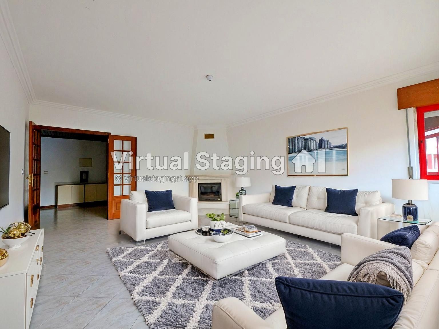 - Large living room with fireplace