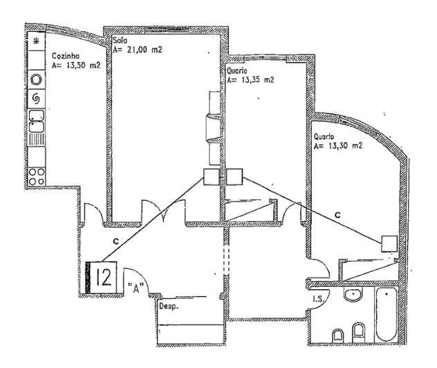 Inserido no 2º piso, este imóvel, em bom estado de conservação, é distribuído por hall de entrada, sala comum, dois quartos, roupeiros, instalação sanitária, cozinha e despensa. Dispõe ainda de lugar de estacionamento e arrecadação.