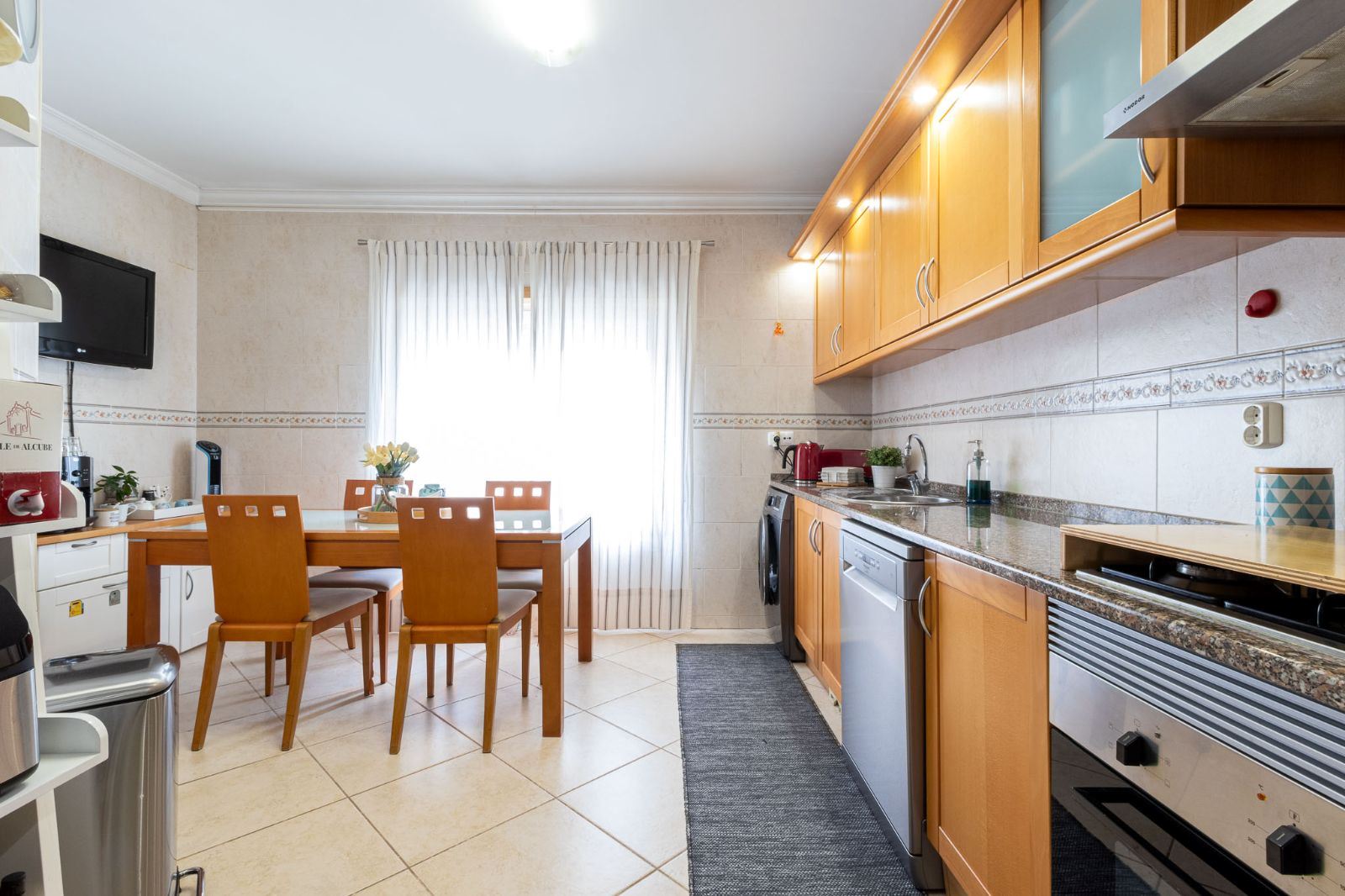 - Cozinha semi-equipada com fogão, forno, exaustor e esquentador, pronta a usar, com bastante espaço de armazenamento
