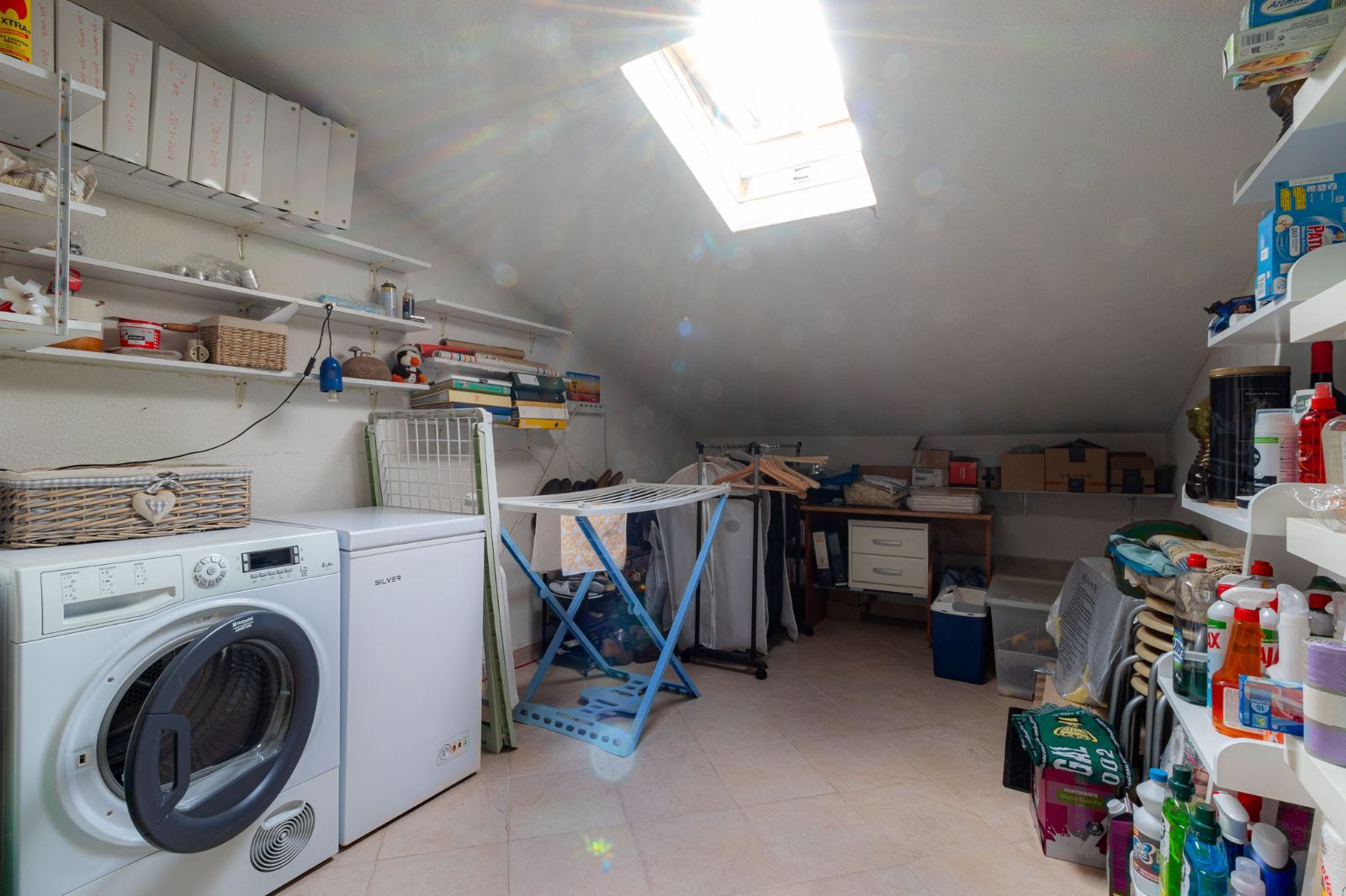 - Arrecadação situada por cima do apartamento, com janela e luz elétrica