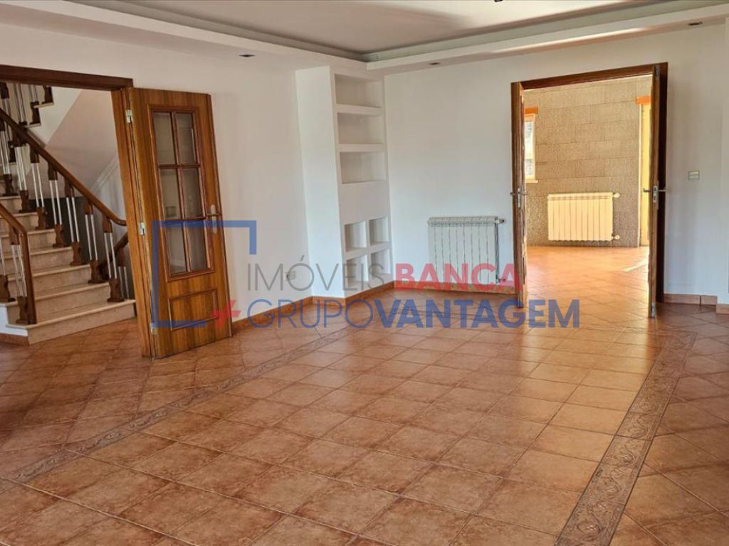 Trata-se de uma moradia em banda, distribuída por dois pisos, composta por um acolhedor hall de entrada, uma ampla sala de estar com lareira e uma sala de jantar com acesso direto a um terraço equipado com churrasqueira, ideal para momentos de lazer.