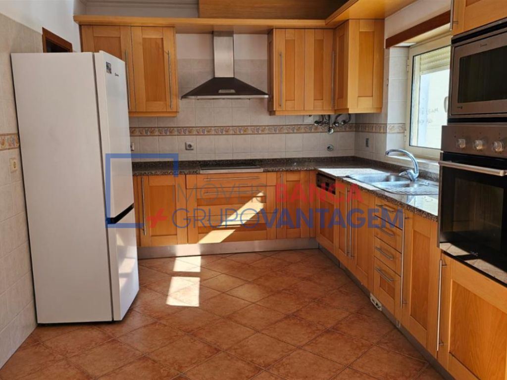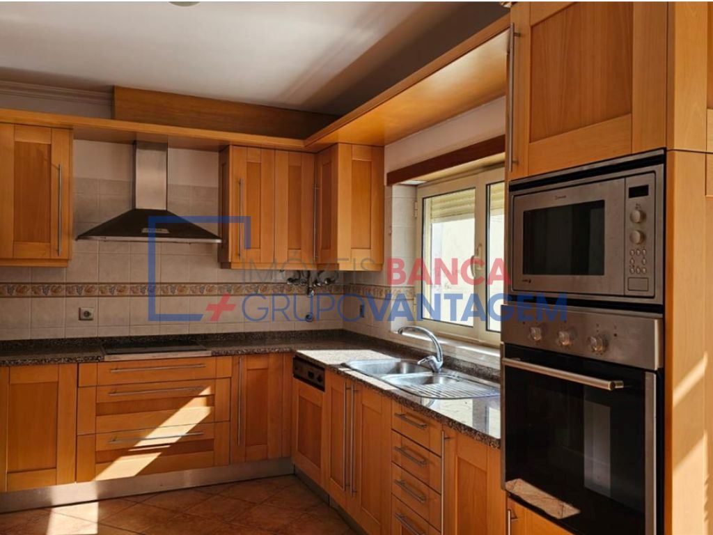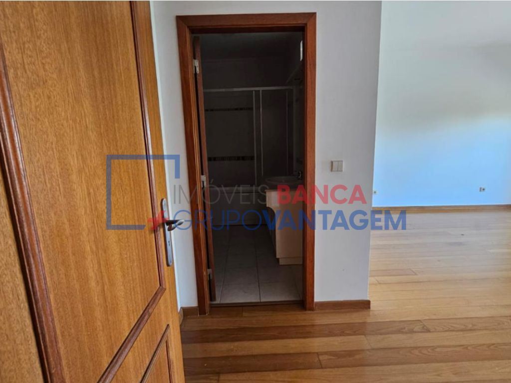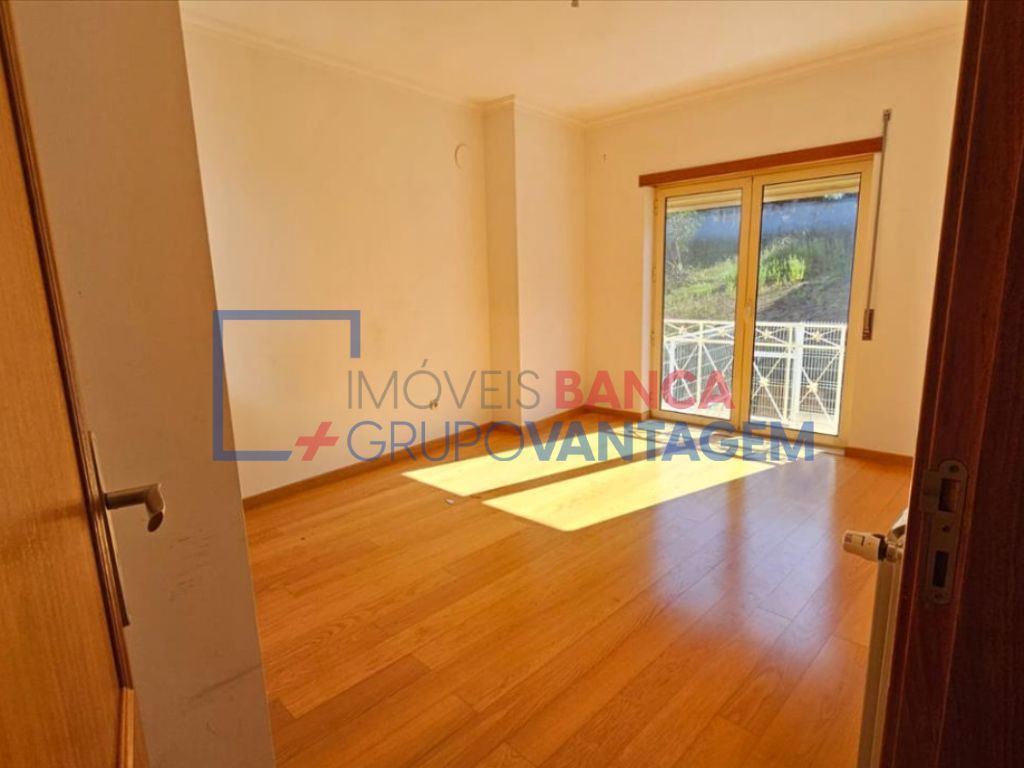 A zona privativa dispõe de quatro quartos com pavimento flutuante, sendo um deles suíte, todos com roupeiros embutidos e acesso a varanda. O imóvel conta ainda com duas instalações sanitárias e uma cozinha totalmente equipada.