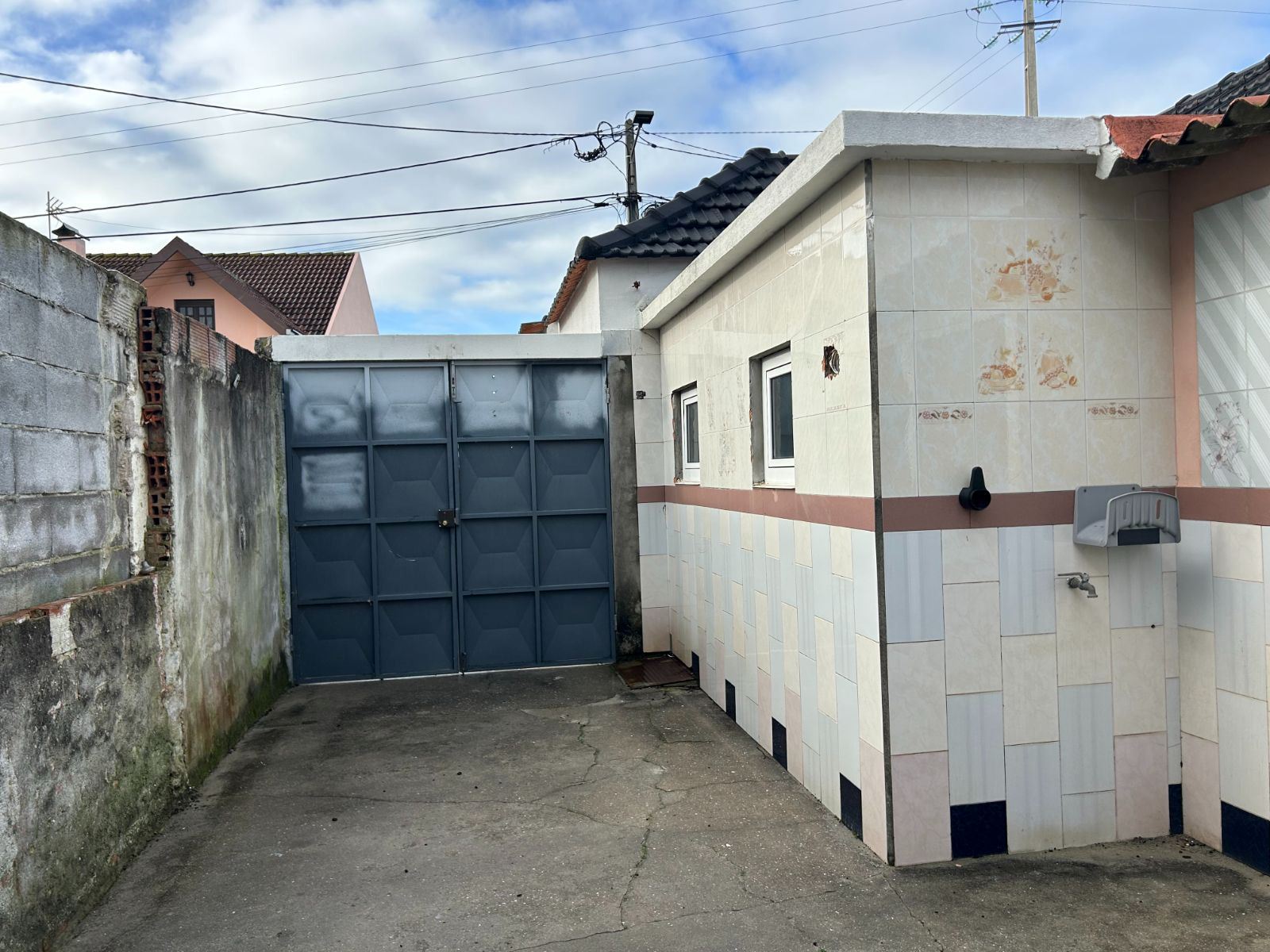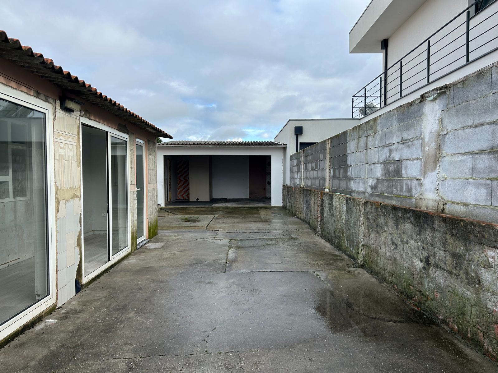 No exterior, dispõe de logradouro com alpendre e anexo destinado a estacionamento.