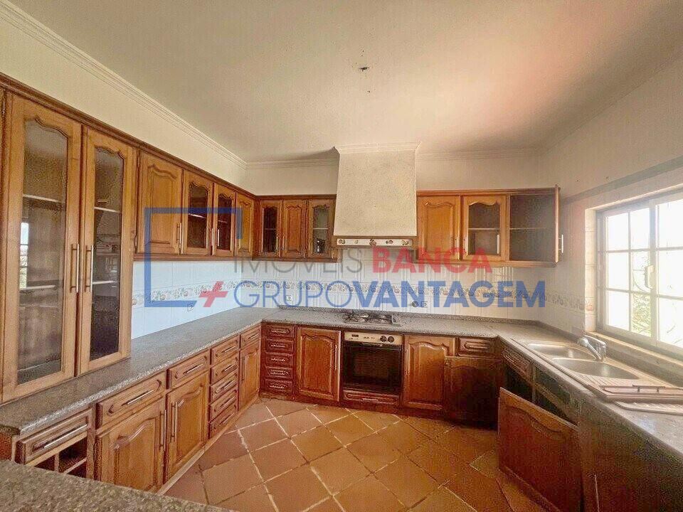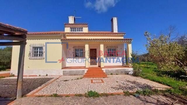 A moradia dispõe ainda de alpendre e está implantada num terreno com área total de 7.500 m², que inclui também um armazém e duas parcelas rústicas.